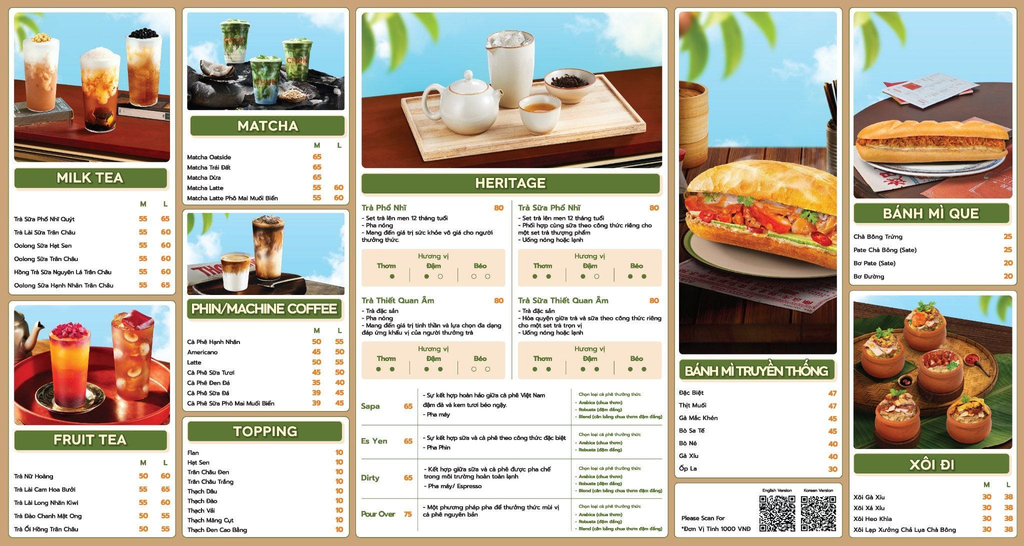 Chuk gửi bạn Menu tại các cửa hàng Chuk Heritage. Bạn tham khảo qua nhé. Chuk xin cảm ơn!
